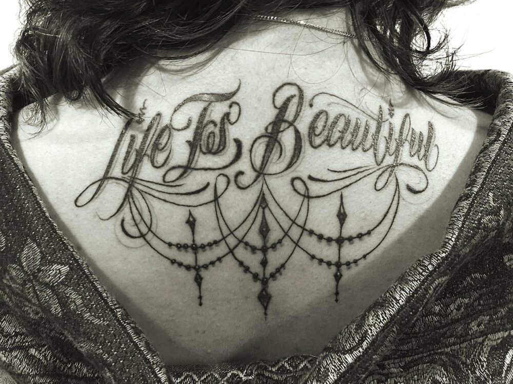La nuque est une zone idéale pour des tatouages à la fois discrets et élégants. Elle se prête aussi bien à une éctiture asiatique qu’une une une croix ou une petite note de musique, les choix sont nombreux. Facile à dissimuler ou à dévoiler en fonction de la situation.